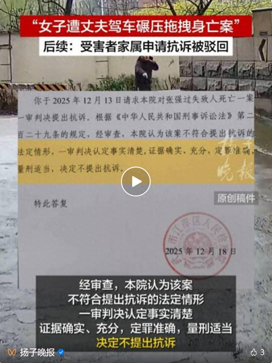 24日,“女子遭丈夫驾车碾压拖拽身亡案”有了最新消息。扬子晚报记者从被害人父亲干先生处获悉,他在一审宣判后向当地检察院提交的抗诉申请被驳回。据武汉市江岸区人民检察院向干先生出具的抗诉请求答复书显示,经审查星速配资,本院认为该案不符合提出抗诉的法定情形星速配资,一审判决认定事实清楚星速配资,证据确实星速配资,充分,定罪准确,量刑适当,决定不提出抗诉。干先生告诉扬子晚报记者,他已经对该案一审的刑事附带民事部分提出上诉,"我还会委托律师继续维权。"2021年3月6日,武汉一名29岁女子在自家楼下车库被丈夫驾车碾压并拖拽8.5米后身亡。案发后,驾驶员张某称自己并未看到妻子。据悉,夫妻两人在案发前有过争吵并且准备离婚。检方以过失致人死亡罪对张某提起公诉。该案已于近日一审宣判,被告人张某获刑5年。来源 | 扬子晚报/紫牛新闻