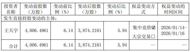 同日,鼎信通讯公告称,近日公司收到持股 5%以上股东王天宇先生函告,获悉其于2026年1月14日至2026年1月16日期间通过集中竞价方式减持公司股份数量1,322,800 股。本次权益变动后,王天宇先生持股比例由 6.14%减少至 5.94%配资伐,权益变动触及 1%整数倍刻度。